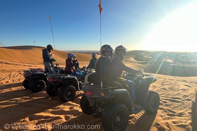 Quadfahren in Merzouga Wüste,Wir starten von unserem Ausgangspunkt.und in die Dünen fahren und immer mit eine Wüstenführer und das kommt darauf an für Sonnenuntergang mit übernachtung in WüstenCamp.