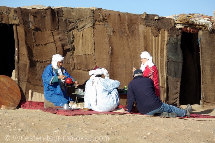 Wüste Übernachtung bei eine familieNomaden - Kamelritt -Sonnenuntergang und Sonnenaufgang– Marokko.